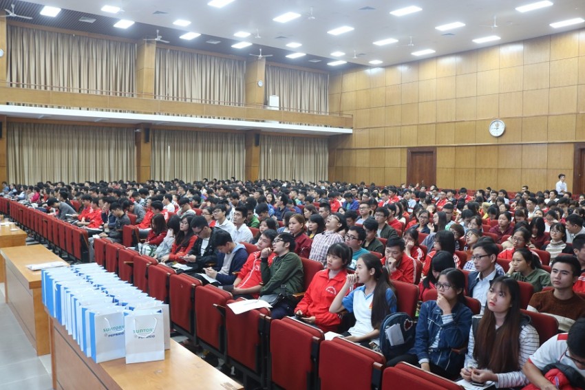 Trong khuôn khổ buổi tọa đàm, sinh viên đã được trực tiếp giao lưu, trao đổi cũng như lắng nghe những chia sẻ của các vị khách mời, đại diện doanh nghiệp đến từ Công ty Sunfory Pepsico Việt Nam, Tập đoàn Viễn thông Quân đội Viettel, Tập đoàn Sekisho Nhật Bản. Những vấn đề chia sẻ xoay quanh định hướng nghề nghiệp, các kỹ năng lẫn chuyên môn cần phải rèn luyện khi ngồi trên ghế Nhà trường… Ngoài ra, tại buổi tọa đàm, các bạn cũng thu thập thêm những thông tin về các vị trí tuyển dụng nhân sự mà các doanh nghiệp trên đang tuyển dụng.