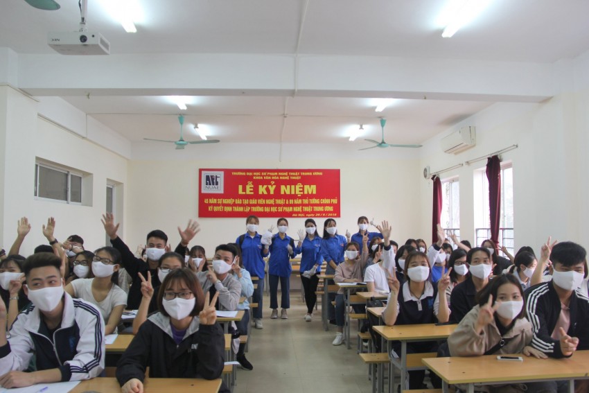 Sinh viên NUAE đã chính thức trở lại cùng với nhịp học và sinh hoạt tại Giảng đường của Trường Đại học Sư phạm Nghệ thuật Trung ương. Sáng nay (02/3). Được gặp lại bạn bè sau thời gian nghỉ phòng tránh dịch CoVid - 19 khá dài, các bạn sinh viên đến trường được gặp thầy, gặp bạn bè trong không khí háo hức, phấn chấn. Để đảm bảo an toàn cho sinh viên khi trở lại trường, ngay từ chiều ngày 28/02/2020, Nhà trường tiến hành các biện pháp khử trùng bằng Cloramin B ở tất cả khu giảng đường cũng như phòng làm việc trong khuôn viên trường. Nhà trường bố trí và đảm bảo nơi rửa tay có đủ nước sạch và xà phòng diệt khuẩn, dung dịch rửa tay khô tại khu vực làm việc, giảng đường; dán các tờ hướng dẫn các bước vệ sinh phòng dịch an toàn. Ngoài ra, Ban chấp hành Đoàn trường còn tuyên truyền phòng, chống dịch bệnh Covid -19 và tổ chức phát khẩu trang miễn phí cho sinh viên Nhà trường tại sảnh nhà E và trực tiếp tại các lớp học.