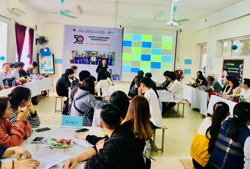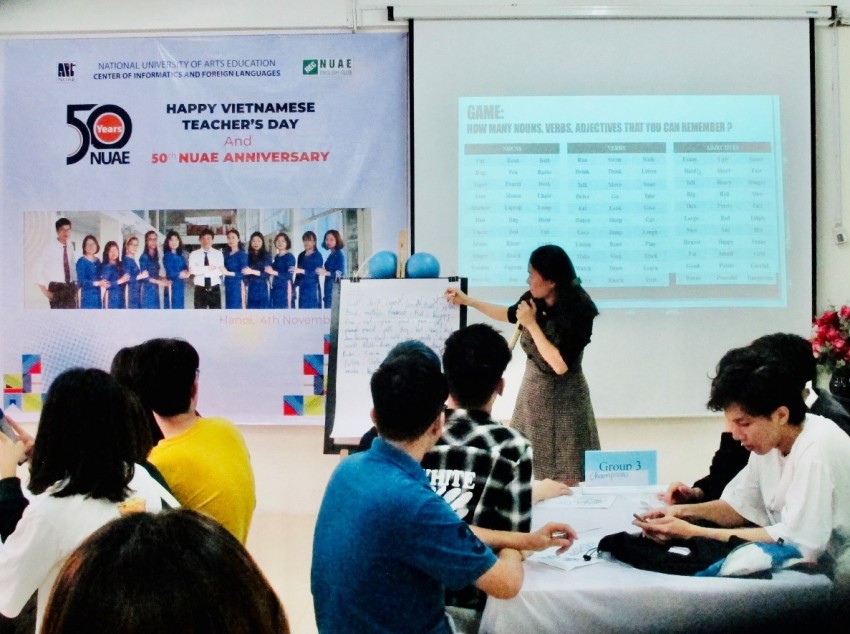 CLB Tiếng Anh là sân chơi bổ ích để các bạn yêu thích tiếng anh có thể sử dụng và thực hành những kỹ năng ngôn ngữ được học một cách tự nhiên và hiệu quả. Đến với buổi sinh hoạt lần này của CLB các bạn sinh viên được tham gia nhiều hoạt động vui tươi, sôi nổi liên quan đến chủ đề “Ngày Nhà giáo Việt Nam và 50 năm Thành lập Trường ĐHSP Nghệ thuật TW” như học tiếng anh qua bài hát, trò chơi, ô chữ, biểu diễn nghệ thuật bằng tiếng anh… Qua đó giúp các em củng cố kiến thức, trau dồi kỹ năng tiếng anh cũng như tăng cường tình đoàn kết, gắn bó với nhau thông qua các hoạt động chung. CLB Tiếng Anh đã trở thành địa chỉ tin cậy để sinh viên nhà trường được tư vấn phương pháp học tập và rèn luyện tiếng anh và là nơi sinh viên trao đổi những nội dung liên quan đến tiếng anh chuyên ngành của các lĩnh vực học tập nghiên cứu khác nhau.