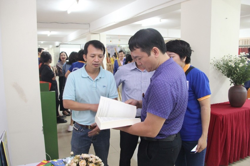 Các cán bộ, giảng viên và sinh viên tham quan nhiều đầu sách hay đủ các thể loại, các sách do cán bộ, giảng viên Nhà trường viết