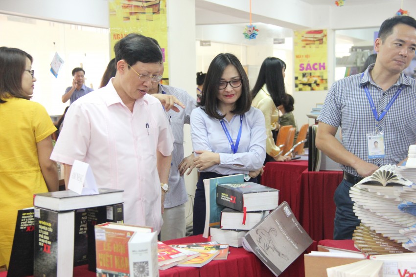 Cán bộ, giảng viên nhà trường tham quan trưng bày sách