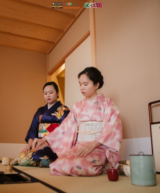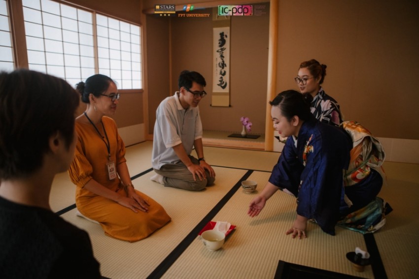 Dưới sự hướng dẫn của những nghệ nhân và chuyên gia Trà Đạo từ Nhật Bản, trong không gian nhẹ nhàng, thanh tao nơi Trà Thất, các cán bộ và sinh viên trường Đại học FPT Hà Nội được tìm hiểu những nét văn hóa Trà đặc sắc của xứ hoa anh đào. Lắng nghe các nghệ nhân chia sẻ những câu chuyện về Trà, được hướng dẫn và thực tập những kỹ thuật pha trà – một phần của kỹ thuật Usucha Temae – pha trà bằng ấm đặt trên chiếu.