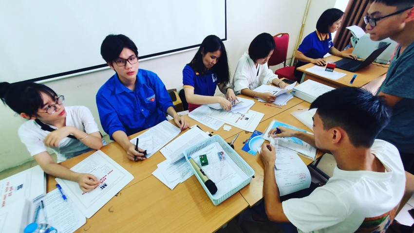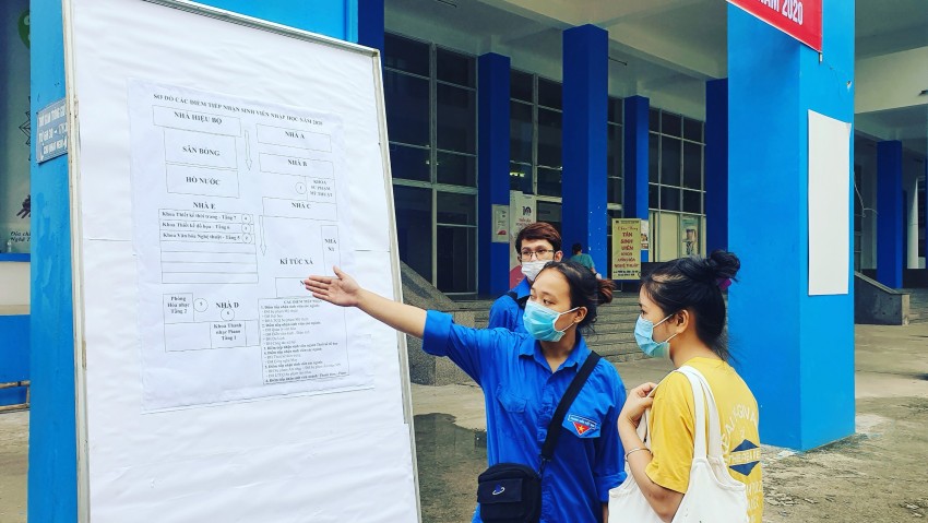 Sinh viên tình nguyện nhiệt tình hướng dẫn các tân sinh viên