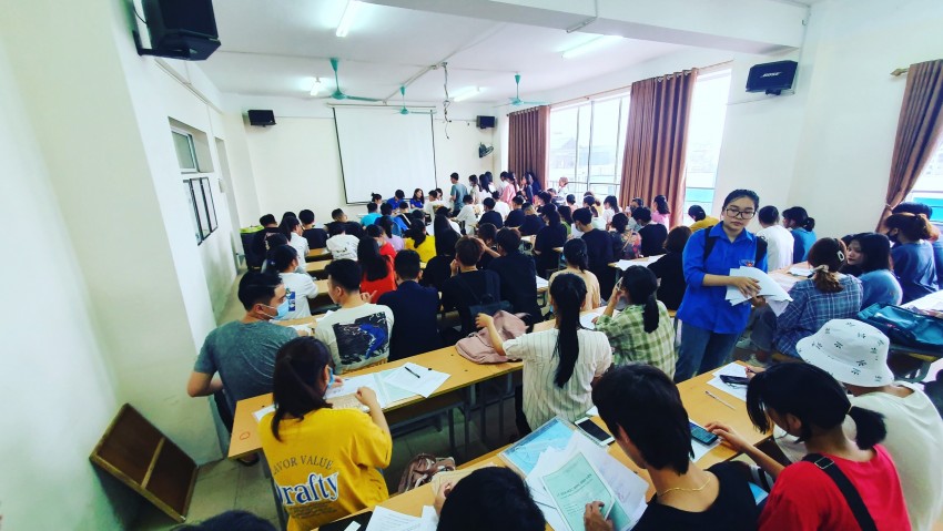 Ngay từ sáng sớm, hàng ngàn thí sinh trúng tuyển đã tập trung tại các khu nhà C,D,E, không khí nhập học vô cùng náo nhiệt và vui vẻ. Sự háo hức của các sinh viên cùng sự vui mừng của các bậc phụ huynh là động lực cho mỗi cán bộ, giảng viên của Nhà trường cùng các bạn sinh viên tình nguyện làm công tác đón tiếp tại buổi xác nhận nhập học đầu tiên này.