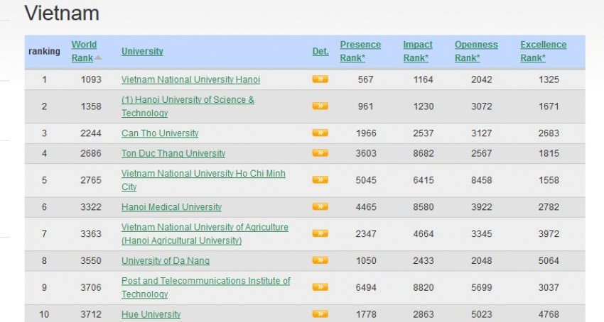 Webometrics là trang đánh giá xếp hạng trường đại học tiên phong trong việc phân tích nguồn dữ liệu online, nhờ đó thống kê, đánh giá được khối lượng cơ sở giáo dục nhiều chưa từng có. Cho đến kỳ xếp hạng này, Webometrics đã thu thập được số liệu của hơn 28.000 trường đại học trên toàn thế giới qua các tiêu chí được chọn.