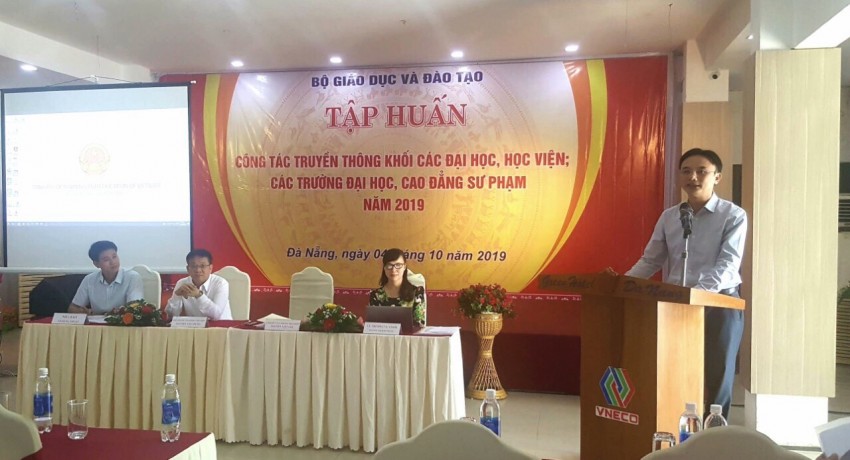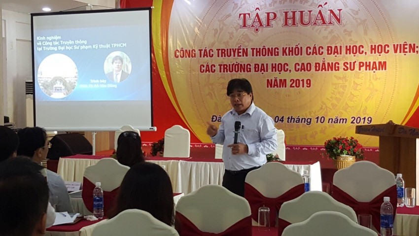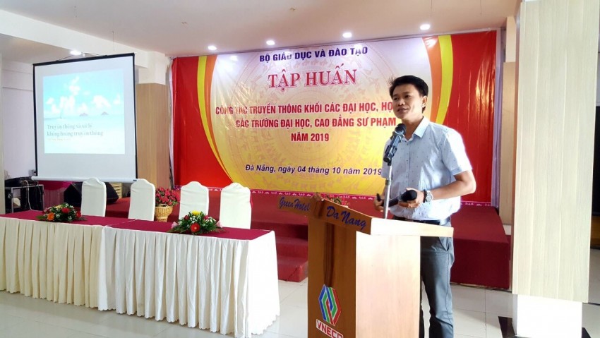 Ngày làm việc thứ hai (04/10), tại buổi Tập huấn công tác Truyền thông khối các đại học, học viện, các trường đại học, cao đẳng sư phạm năm 2019, các đại biểu đã được nghe chia sẻ những kiến thức về: Tự chủ đại học theo Luật Giáo dục đại học 2019; Quan điểm về truyền thông giáo dục và ững xử với báo chí; Truyền thông thời kỳ 4.0 và cách thức xử lý sự cố truyền thông; Giới thiệu về mô hình truyền thông của 2 cơ sở giáo dục đại học (Trường Đại học Sư phạm Kỹ thuật Thành phố Hồ Chí Minh và Đại học Đà Nẵng).