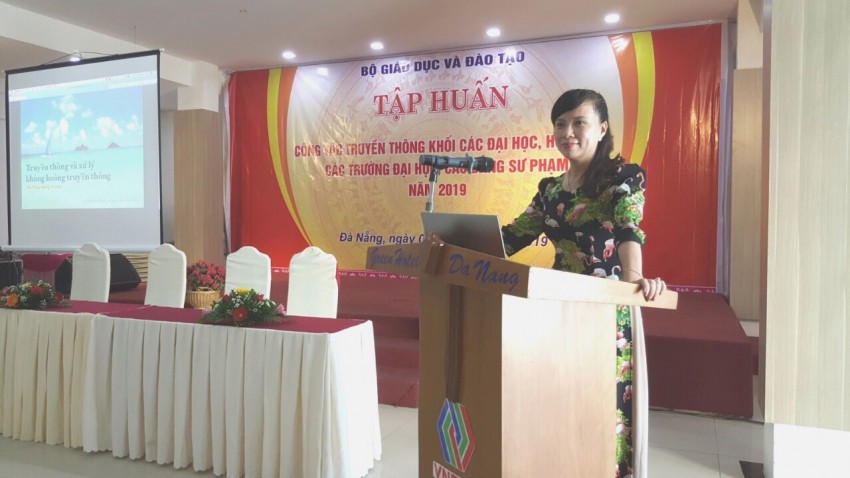 Trong hai ngày 03 và 04/10/2019, tại Thành phố Đà Nẵng, Bộ Giáo dục và Đào tạo tổ chức Tập huấn công tác truyền thông khối các đại học, học viện, các trường đại học, cao đẳng sư phạm năm 2019. Đoàn công tác của Trường ĐHSP Nghệ thuật TW do PGS.TS. Đào Đăng Phượng - Hiệu trưởng làm trưởng đoàn cùng ThS. Trịnh Thị Thanh - Trưởng phòng Tổ chức - Hành chính, TS. Lê Thị Mỹ Hạnh - Phó giám đốc Trung tâm Truyền thông và Ứng dụng Nghệ thuật tham dự.