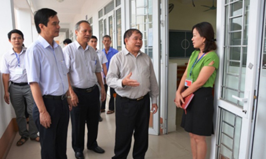 Thứ trưởng Bộ Giáo dục và Đào tạo cùng lãnh đạo UBND tỉnh Yên Bái và các thành viên Ban Chỉ đạo kỳ thi THPT quốc gia năm 2017 tỉnh Yên Bái kiểm tra công tác chuẩn bị kỳ thi tại một số điểm thi