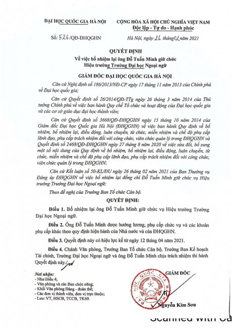 Tiếp tục giữ cương vị Hiệu trưởng, TS. Đỗ Tuấn Minh mong muốn cùng tập thể cán bộ viên chức, học sinh sinh viên Nhà trường kiên trì thực hiện sứ mệnh “đóng góp vào sự phát triển của đất nước thông qua việc đào tạo nguồn nhân lực chất lượng cao, nghiên cứu khoa học, cung cấp các sản phẩm và dịch vụ đáp ứng yêu cầu của xã hội theo chuẩn quốc tế” với tầm nhìn “phát triển theo định hướng nghiên cứu, trở thành trung tâm đào tạo và nghiên cứu có uy tín trong khu vực về giáo dục ngoại ngữ, ngôn ngữ, quốc tế học và một số ngành khoa học xã hội và nhân văn có liên quan” của Trường Đại học Ngoại ngữ – Đại học Quốc gia Hà Nội (ULIS).