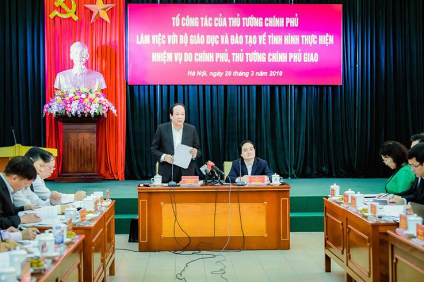 Tại cuộc làm việc, Bộ trưởng, Chủ nhiệm Văn phòng Chính phủ Mai Tiến Dũng, Tổ trưởng Tổ công tác cũng đã truyền đạt ý kiến của Thủ tướng về 6 vấn đề đang được dư luận rất quan tâm để Bộ GD&ĐT giải trình, báo cáo thêm, có giải pháp khắc phục trong thời gian tới.