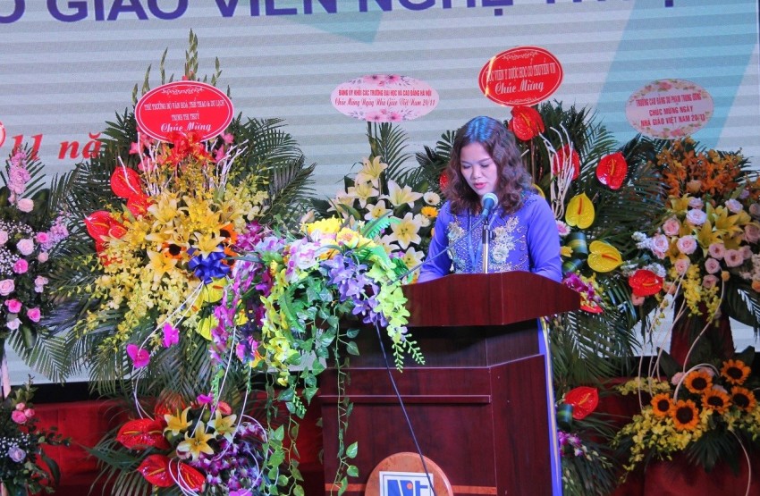 Đại diện cho cán bộ giảng viên Nhà trường, TS. Trịnh Thị Hà, Phó Giám đốc Trung tâm Tin học và Ngoại ngữ đã chia sẻ những tâm tư, tình cảm, lòng biết ơn đối với các thế hệ nhà giáo đã có nhiều công lao đối với sự phát triển lớn mạnh của Trường ĐHSP Nghệ thuật TW ngày hôm nay. Với cương vị là một nhà giáo trong môi trường Sư phạm Nghệ thuật, TS luôn cảm thấy tự hào và vinh dự khi được góp phần tâm sức, trí tuệ đối với sự nghiệp cao quý - sự nghiệp giáo dục nghệ thuật của nước nhà.