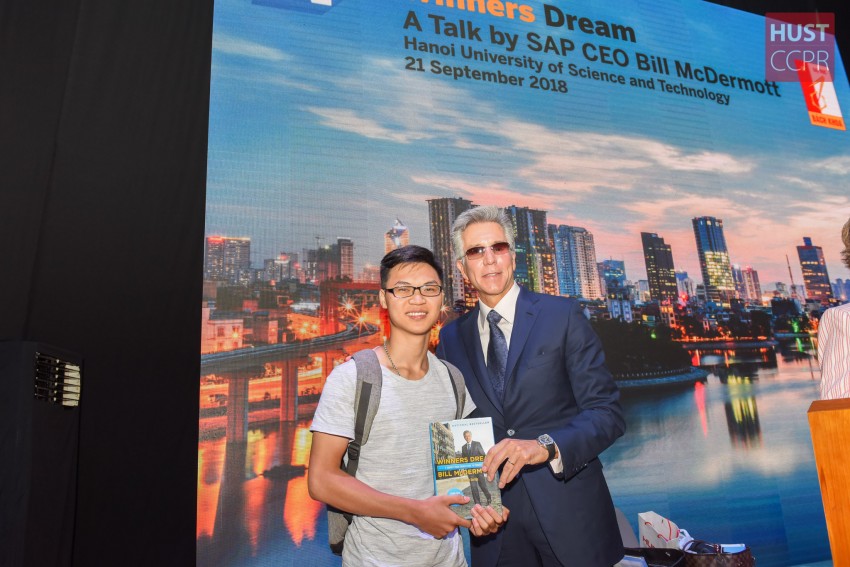 Trong khuôn khổ buổi nói chuyện, CEO Bill McDermott đã trả lời rất nhiều câu hỏi của các bạn sinh viên về hành trình “chinh phục giấc mơ chiến thắng”. Ông cũng rất ấn tượng với thế hệ trẻ Việt Nam vì “họ chăm chỉ, thông minh và có ước mơ”.