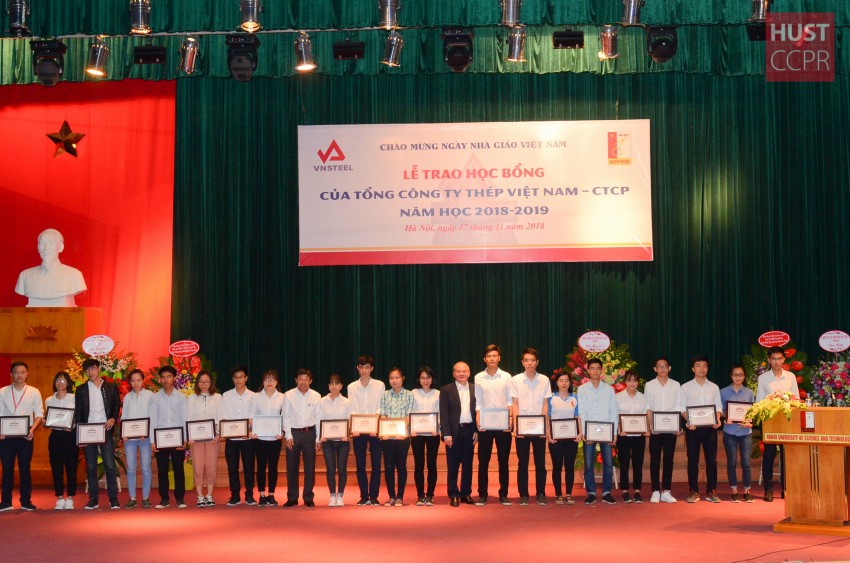 Lễ trao học bổng có sự hiện diện của Ông Nguyễn Đình Phúc - Ủy viên Hội đồng quản trị, Tổng Giám đốc VNSTEEL; ông Đinh Quốc Thái – Phó Tổng Giám đốc VNSTEEL; PGS Trần Văn Tớp – Phó Hiệu trưởng Trường ĐHBK Hà Nội; đại diện lãnh đạo các Khoa, Viện, Phòng, Ban, Trung tâm và các em sinh viên nhận học bổng.