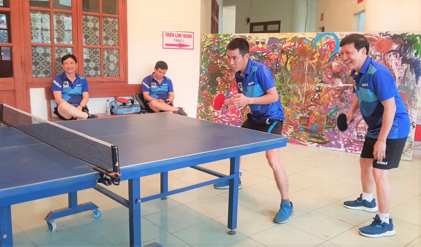Sau buổi gặp mặt là màn giao lưu thể thao của cán bộ, giảng viên, đoàn viên hai trường. Hai trường đã chia đội để giao lưu thể thao: Tennis, bóng bàn, cầu lông. Trận đấu của các vận động viên hai trường là nghệ sĩ, nhà giáo dạy nghệ thuật luôn tràn ngập tiếng cười sảng khóai khi thể hiện được kỹ thuật “xoáy” ở bóng bàn, tennis rất đẹp mắt.