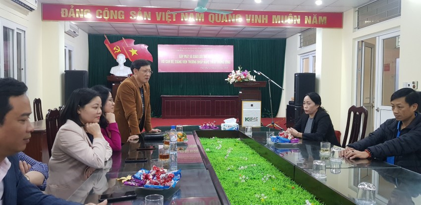 Đồng chí Bùi Thị Dung – Bí thư Đảng ủy, Q. Hiệu trưởng trường Cao đẳng Văn hóa Nghệ thuật Thái Bình phát biểu tại buổi gặp mặt của đoàn viên công đoàn hai trường.