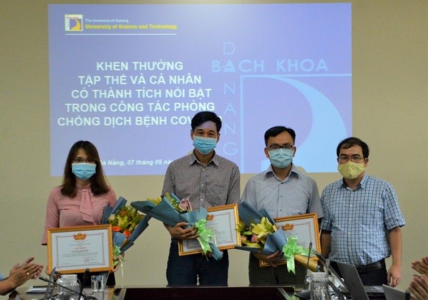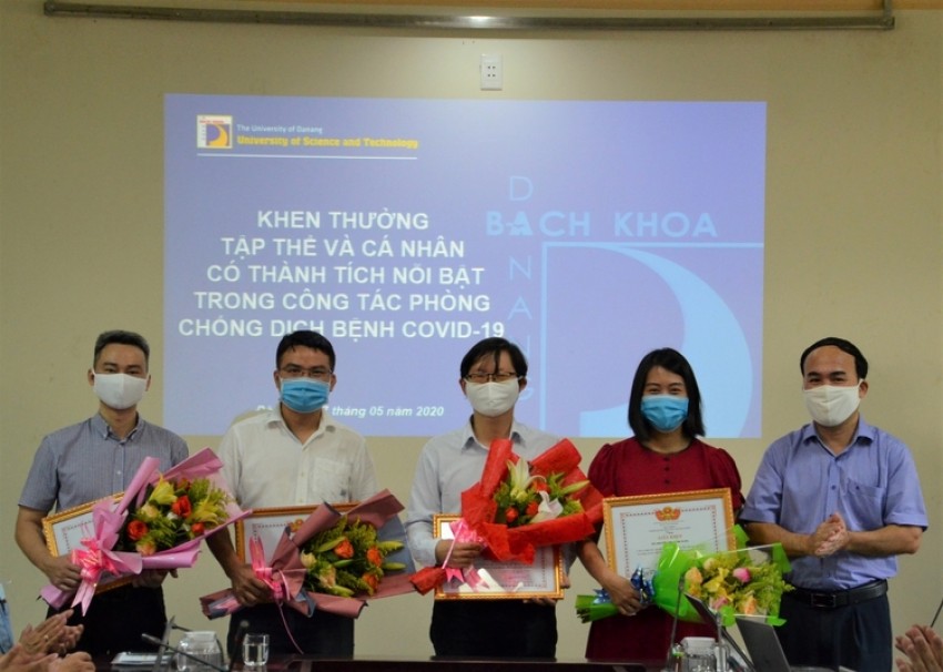 Hiệu trưởng Nhà trường đã khen thưởng 01 tập thể (Tổ CNTT) và 11 cá nhân vì đã có thành tích nổi bật trong công tác triển khai dạy-học trực tuyến. Đặc biệt, trong thời gian qua, Trường Đại học Bách khoa-ĐHĐN là một trong những trường đại học tiên phong trong cả nước có nhiều sản phẩm khoa học công nghệ hữu ích được nghiên cứu, chế tạo và chuyển giao ứng dụng phục vụ cộng đồng hiệu quả như: Dung dịch rửa tay sát khuẩn, Robot vận chuyển nhu yếu phẩm phục vụ cách ly (đã chuyển giao cho Bệnh viện Phụ sản Nhi Đà Nẵng), Máy sát khuẩn tay tự động (đã chuyển giao cho các trường học trên địa bàn và Bệnh viện Đà Nẵng)… kịp thời đáp ứng nhu cầu phòng, chống Covid-19 tại các bệnh viện, cơ quan, trường học … qua đó thể hiện trách nhiệm xã hội, góp phần nâng cao uy tín, học hiệu của Nhà trường, được cộng đồng ghi nhận, đánh giá cao.