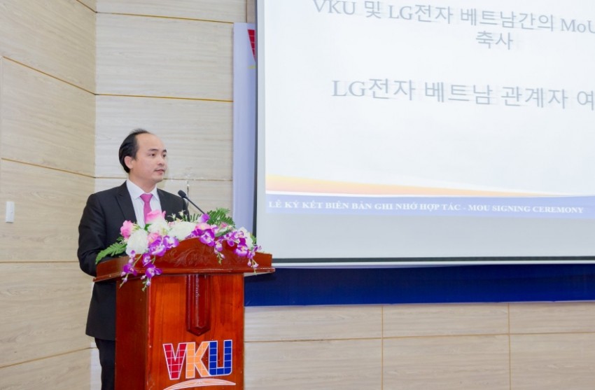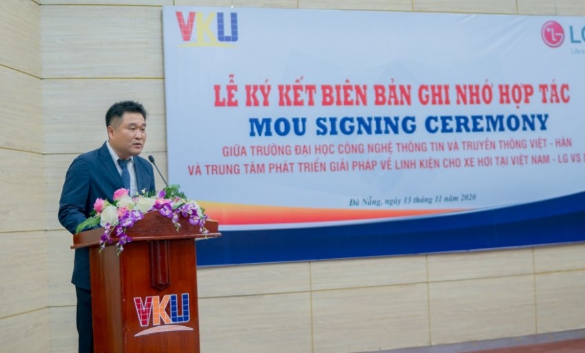 Phát biểu với Nhà trường, Giám đốc Trung tâm phát triển giải pháp về linh kiện ô tô tại Việt Nam-LG Electronics, Chi nhánh Đà Nẵng Kim Jong Bok đánh giá cao VKU là trường ĐH duy nhất của khu vực miền Trung đào tạo và nghiên cứu chuyên sâu về CNTT.
