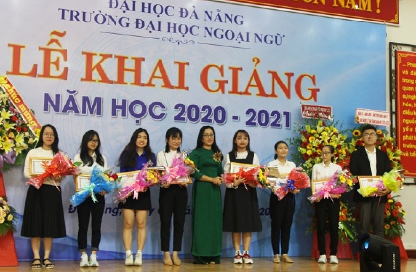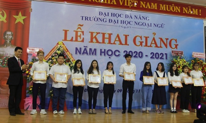 Nhân dịp này, lãnh đạo ĐHĐN và Nhà trường đã trao thưởng cho tân SV Thủ khoa Trường và Thủ khoa các ngành trong kỳ tuyển sinh 2020, SV tiêu biểu, lớp trưởng và cán bộ Đoàn-Hội có thành tích xuất sắc trong học tập, rèn luyện trong năm học 2019-2020.