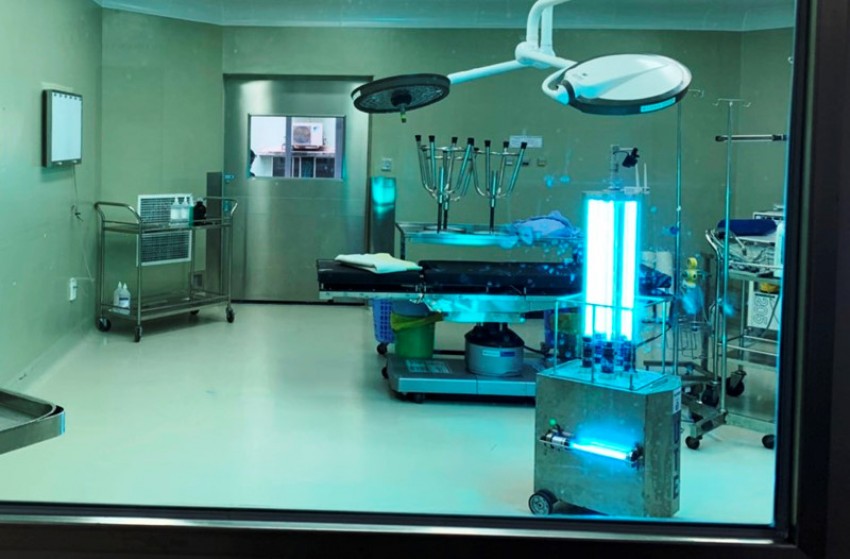 Robot phát ra tia UV khử khuẩn trong phòng cách ly của bệnh viện