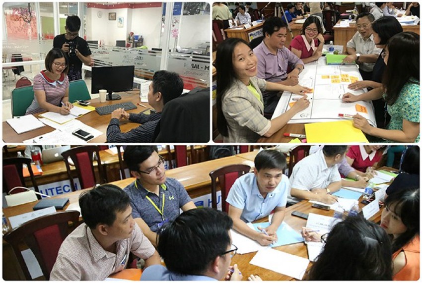 Các giảng viên tham gia thảo luận, làm việc nhóm tại Khóa đào tạo khởi nghiệp sáng tạo