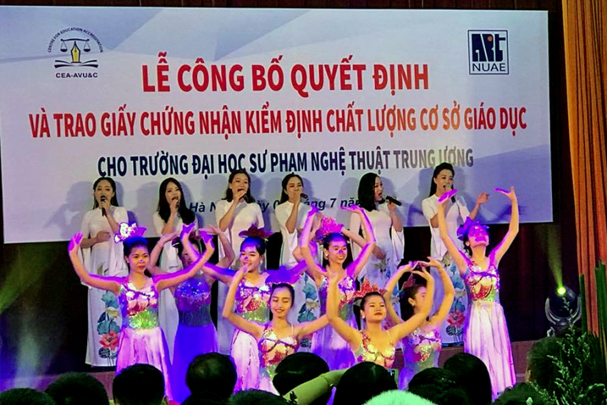 Ảnh: Sinh viên Trường ĐHSP Nghệ thuật Trung ương biểu diễn trong ngày Nhà trường nhận