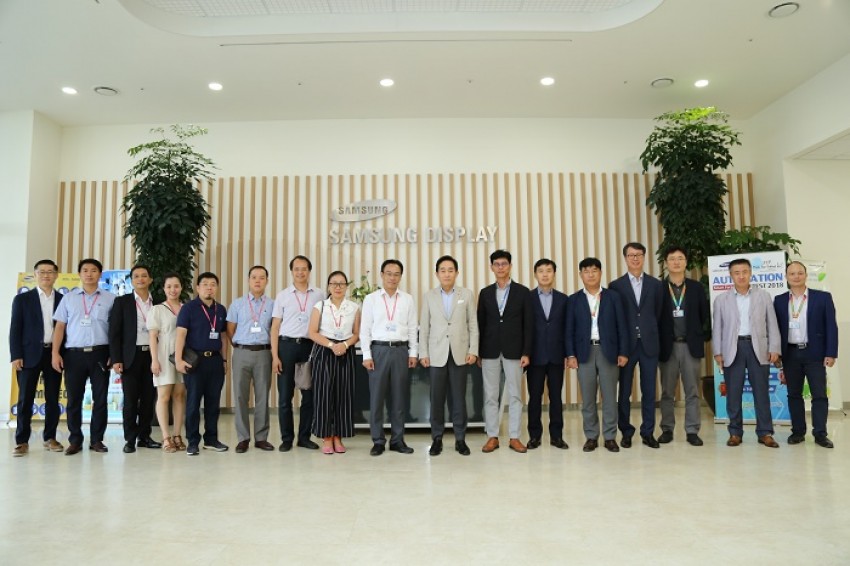 Trước khi buổi làm việc diễn ra, Đoàn đã thăm quan khuôn viên của SDV như: thăm khu nhà ăn, phòng học và làm việc của Trung tâm đào tạo chất lượng cao và đặc biệt tham dự Lễ khai mạc vòng thi chung kết Cuộc thi SDV Automation Contest 2018.