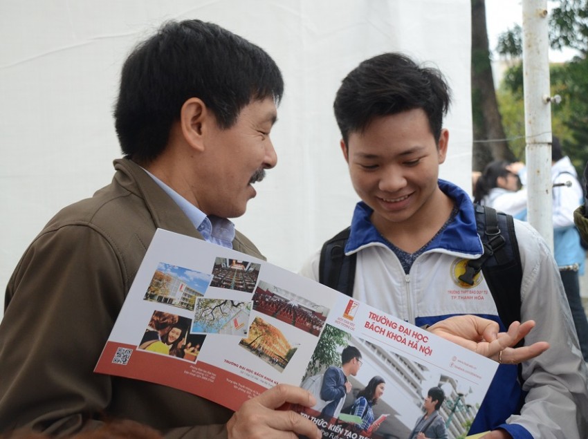 Học sinh tham gia tư vấn tại gian thông tin Trường ĐHBK Hà Nội