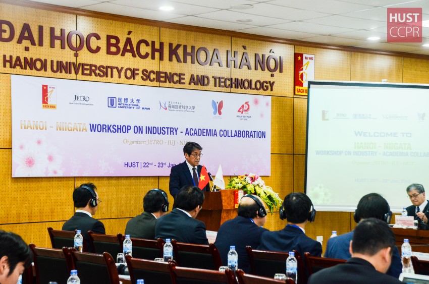 “Trong bối cảnh toàn cầu hóa và sự phát triển của quan hệ chiến lược giữa Việt Nam – Nhật Bản, Trường ĐHBK Hà Nội và Đại học Công nghệ Nagaoka đang tập trung thúc đẩy chương trình đào tạo tích hợp, dự án nghiên cứu phối hợp giữa trường đại học – công nghiệp góp phần phát triển nguồn nhân lực phục vụ đổi mới, sáng tạo, cung cấp kỹ sư trình độ cao” – PGS Hoàng Minh Sơn – Hiệu trưởng Trường ĐHBK Hà Nội nhấn mạnh.