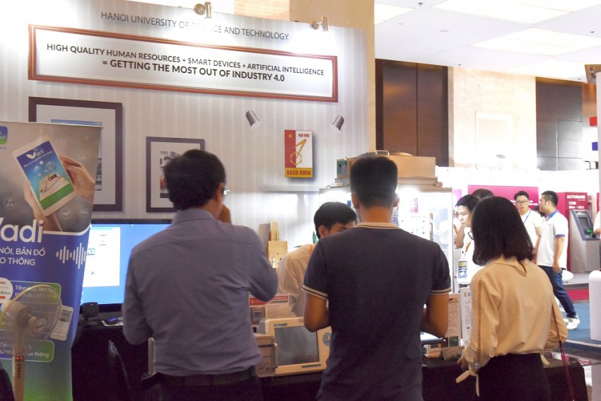Tại triển lãm lần này, gian trưng bày của Trường ĐHBK Hà Nội nhận được sự quan tâm của đông đảo người tham dự với các sản phẩm khoa học công nghệ: Nhà thông minh smart home đến từ Viện nghiên cứu quốc tế về thông tin đa phương tiện, truyền thông và ứng dụng (MICA); Hệ thống phần mềm nhận diện khuôn mặt, Ứng dụng Bản đồ giao thông và Báo nói đọc tin tức – Vadi của Viện Công nghệ thông tin và Truyền thông, Máy in 3D tự động... và nhiều sản phẩm khoa học khác. Đặc biệt, gian triển lãm của Trường ĐHBK Hà Nội vinh dự đón Phó thủ tướng chính phủ Vũ Đức Đam ghé thăm. Phó thủ tướng mong muốn các cơ sở giáo dục cần phát huy hơn nữa tiềm lực để sẵn sàng đón nhận làn sóng đầy mạnh mẽ của cuộc cách mạng công nghiệp 4.0.
