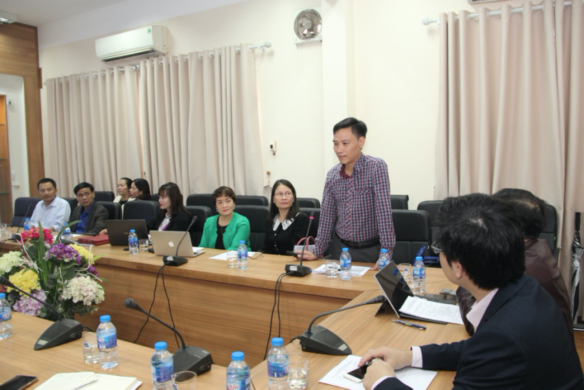 Ông Bùi Tiến Dũng - Chuyên viên Chính Vụ Giáo dục Chính trị và Công tác học sinh sinh viên trình bày tham luận