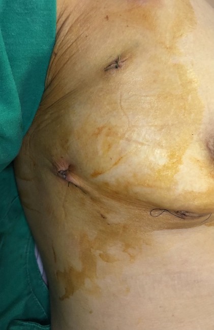 Hình ảnh vết mổ của bệnh nhân sau phẫu thuật bằng công nghệ nội soi 3D.