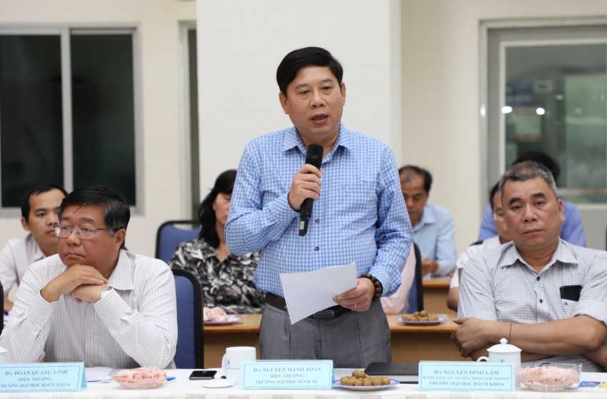 Báo cáo với đoàn công tác, Hiệu trưởng các trường thành viên của ĐHĐN là Trường ĐH Kinh tế, Trường ĐH Bách khoa đã trình bày tóm tắt tình hình triển khai thực hiện Luật Giáo dục ĐH sửa đổi. PGS.TS. Nguyễn Mạnh Toàn - Hiệu trưởng Trường ĐH Kinh tế-ĐHĐN đã khẳng định vai trò và xu thế tất yếu của tự chủ ĐH đồng thời đề xuất cần xác định phương thức, cơ chế phù hợp đối với các trường triển khai tự chủ ĐH tạo điều kiện để Nhà trường có chính sách hỗ trợ sinh viên hiệu quả hơn.