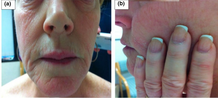 Loạn dưỡng móng và viêm da tiếp xúc airborn dermatitis.