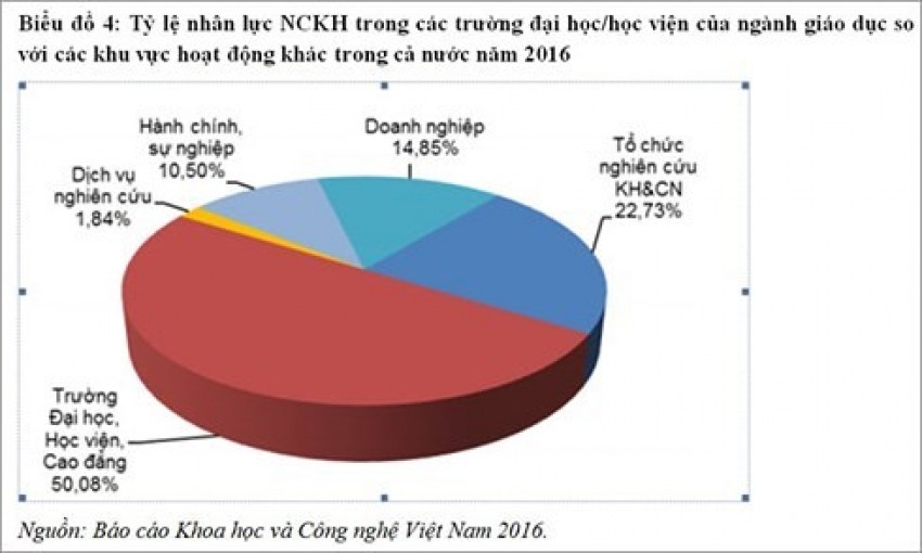 Trước đó, năm 2010, theo thống kê của Bộ Giáo dục và Đào tạo, trong 56.000 cán bộ giảng dạy ở các trường đại học, cao đẳng chỉ có khoảng 1.100 giảng viên (chiếm 3%) tham gia NCKH và rất ít giảng viên trẻ tham gia nghiên cứu.