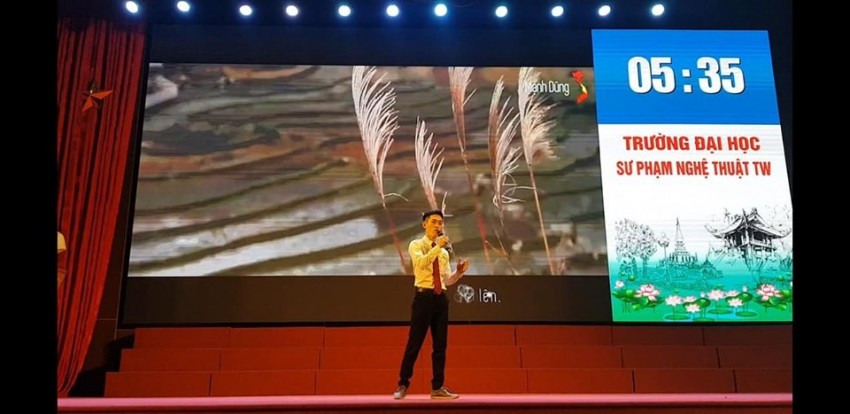 Phần thi hùng biện và múa phụ họa của đội Trường ĐHSP Nghệ thuật TW